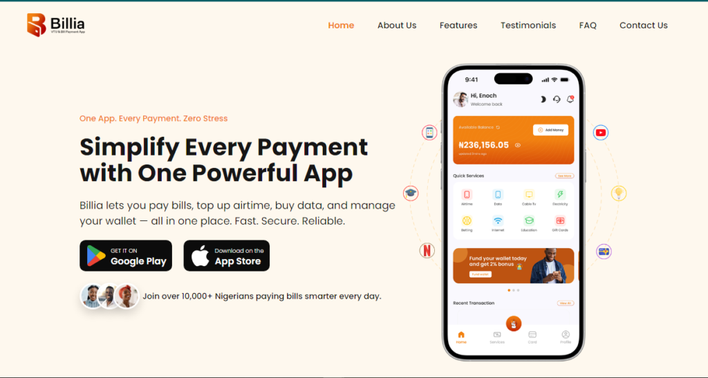 A modern SaaS/fintech landing platform built to introduce and onboard users to Billia’s financial tools and services. The homepage acts as a product showcase, articulating value propositions, core benefits, and user workflows for payments, transfers, or wallet features. Designed to convert visitors into users, the site uses clean layouts, strong calls to action, and clear feature breakdowns to simplify complex financial concepts.